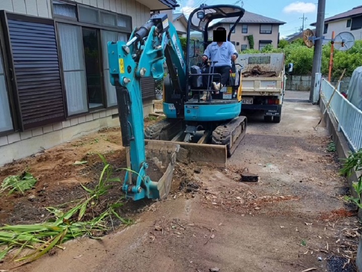 ホーム施工事例茨城県牛久市 住宅外構修繕 駐車場土間コンクリート打設工事